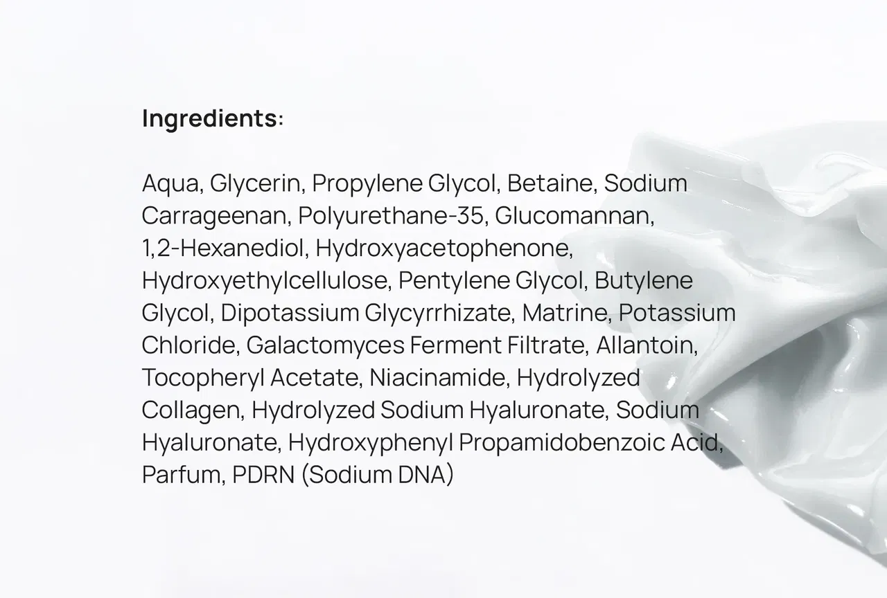 PDRN encourages cell renewal while Hyaluronic Acid keeps skin plump β reducing dryness and maintaining youthfulness.